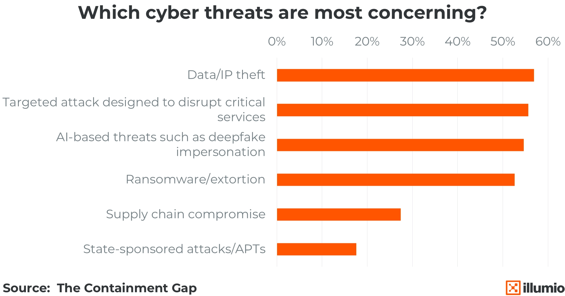 Concern about cyber threats is nearly universal. While data theft and operational disruption remain the most cited fears, the widespread anxiety across categories — from supply chain compromise to state-sponsored attacks — highlights a growing need for containment-first Zero Trust strategies.